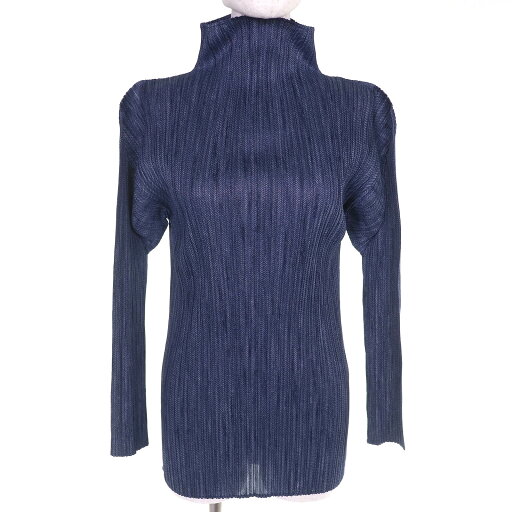 プリーツプリーズ PLEATS PLEASE 美品 NEW COLORFUL BASICS 4 プリーツカットソー ノースリーブ モックネック 3 L 紺 ネイビー PP05JK402