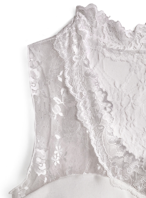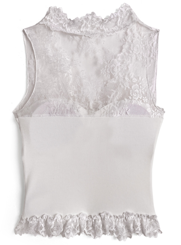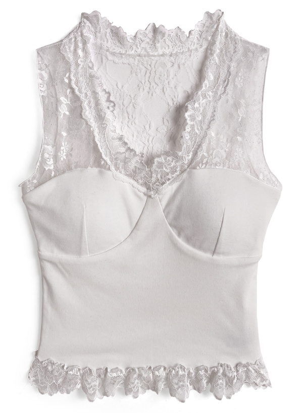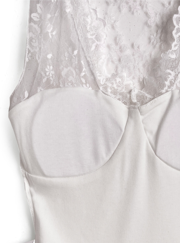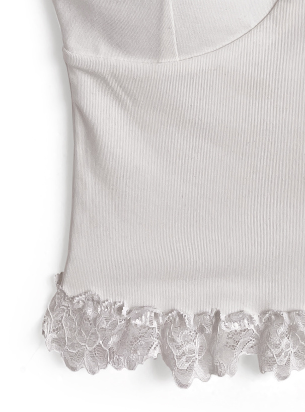 上品なフラワー柄のレースとカットソー生地を組み合わせたタンクトップ。