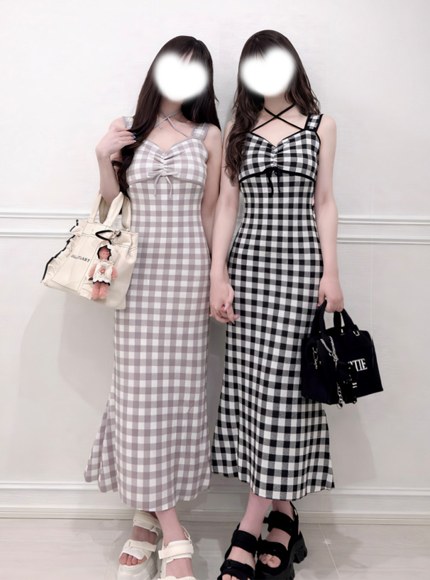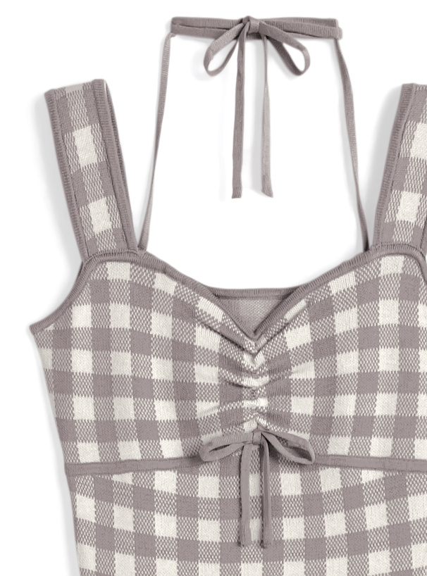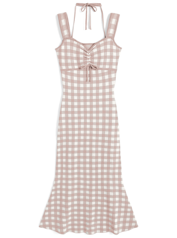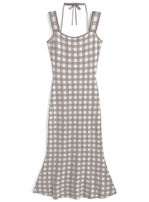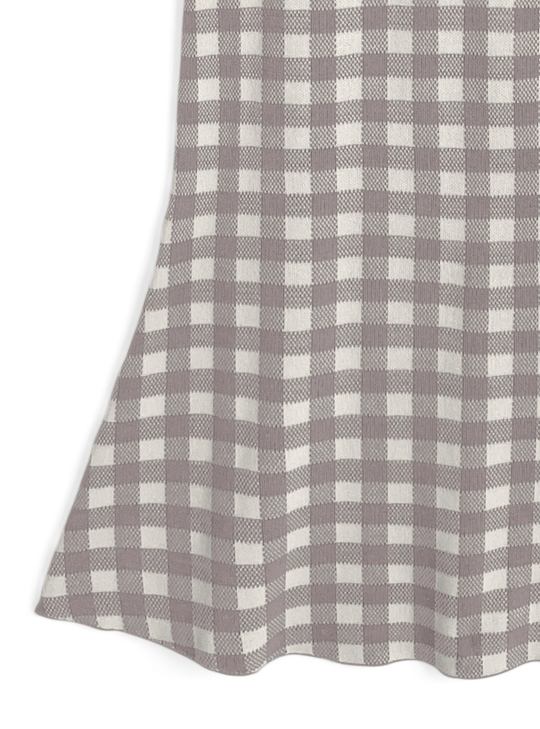 ジャガード編みで表現したギンガムチェック柄が目を惹くニットワンピース。