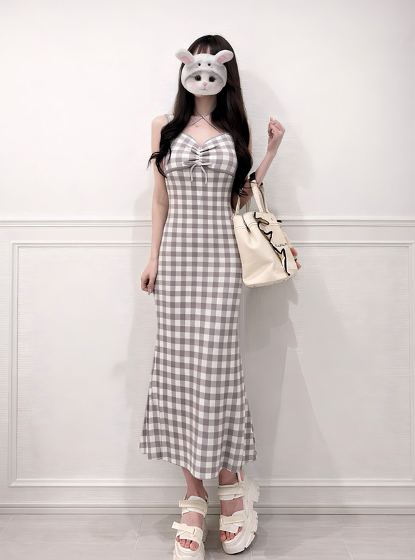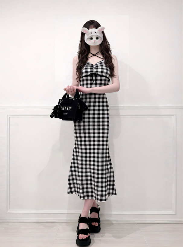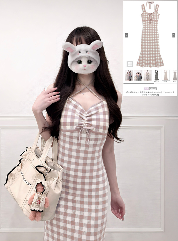 首元はホルターネック仕様にすることで、抜け感のあるルックスに仕上げた。