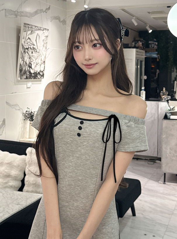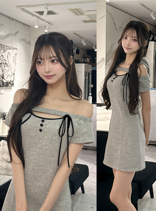 大胆な肌見せで女性らしさを引き立てる、オフショル仕様のミニワンピース。