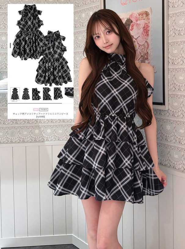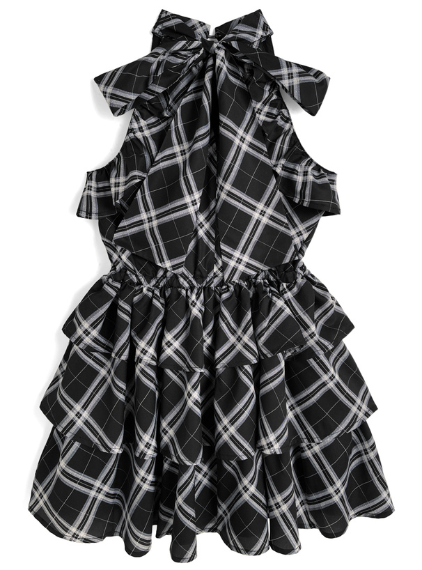 バックネックで結んだ存在感のあるリボンもアクセント。