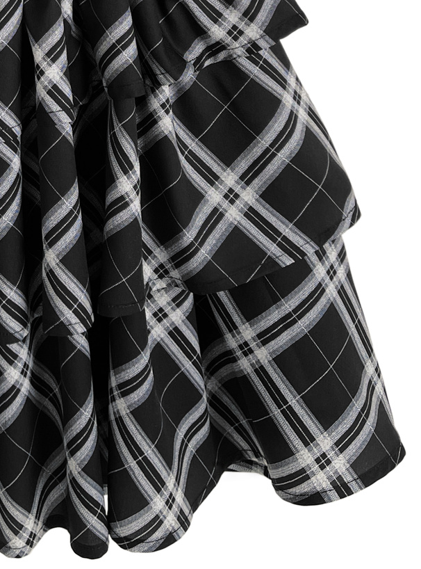 スカート部分は生地を3段に重ねた、ボリュームたっぷりのふんわりシルエット。