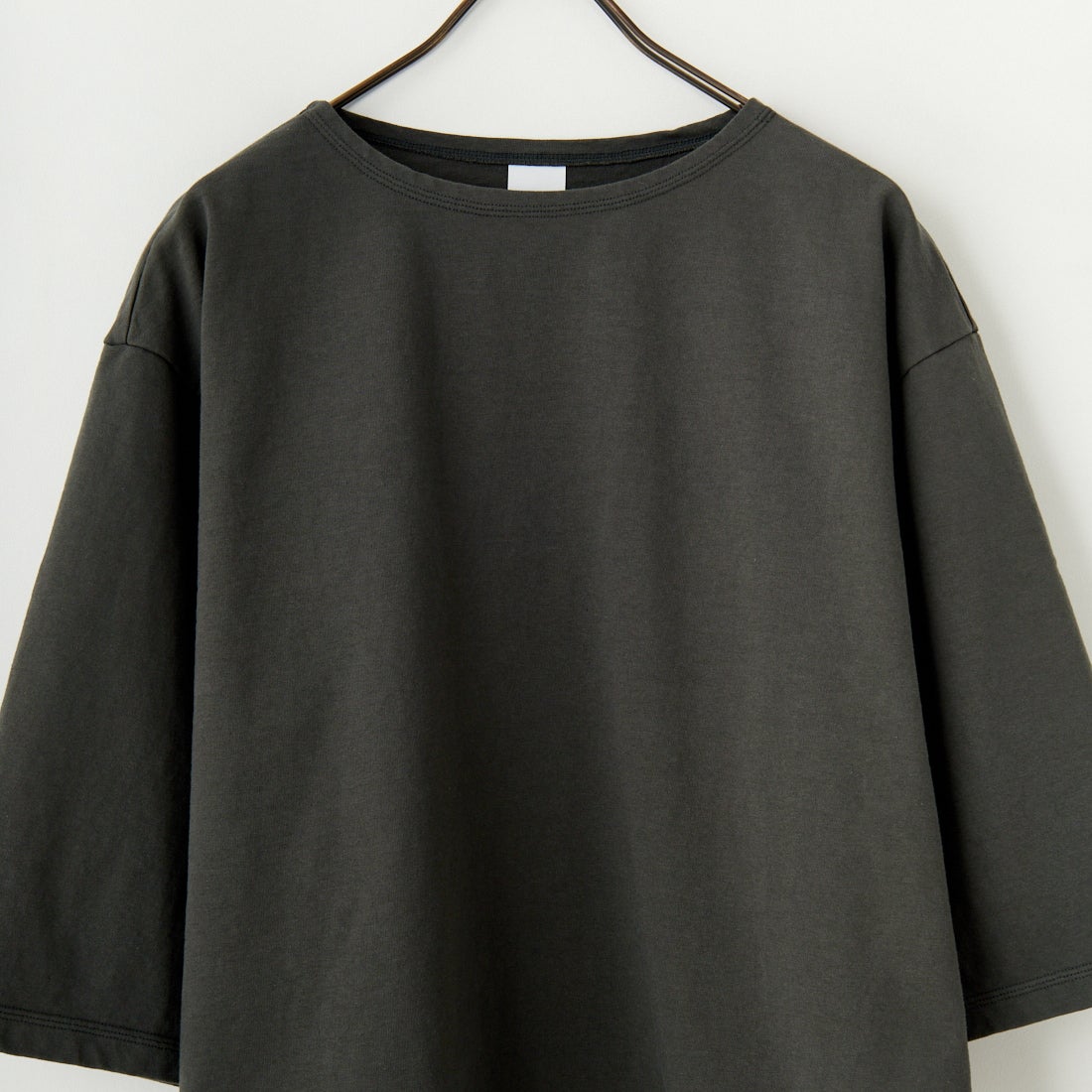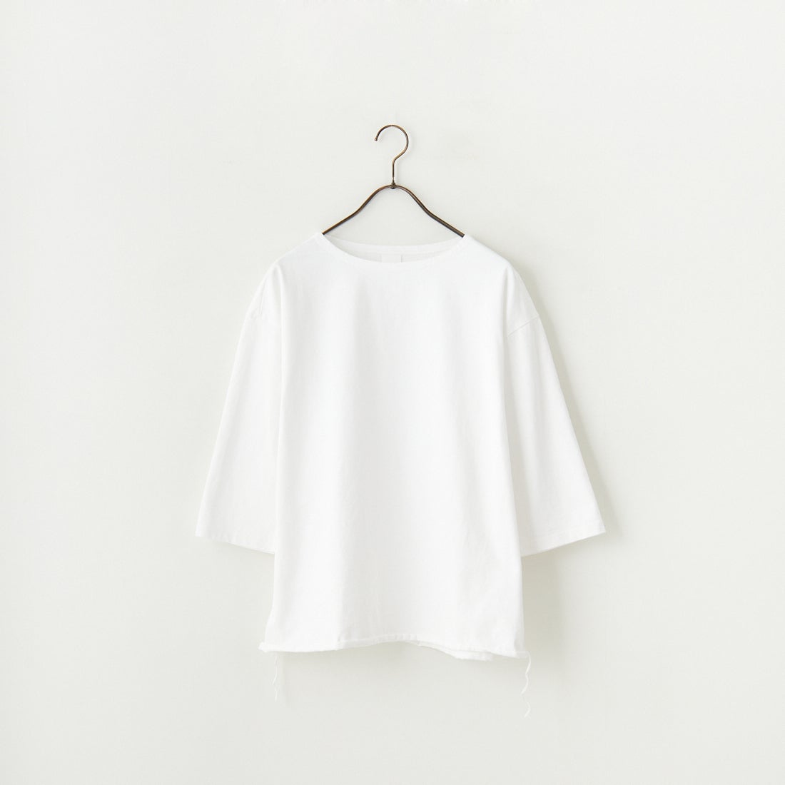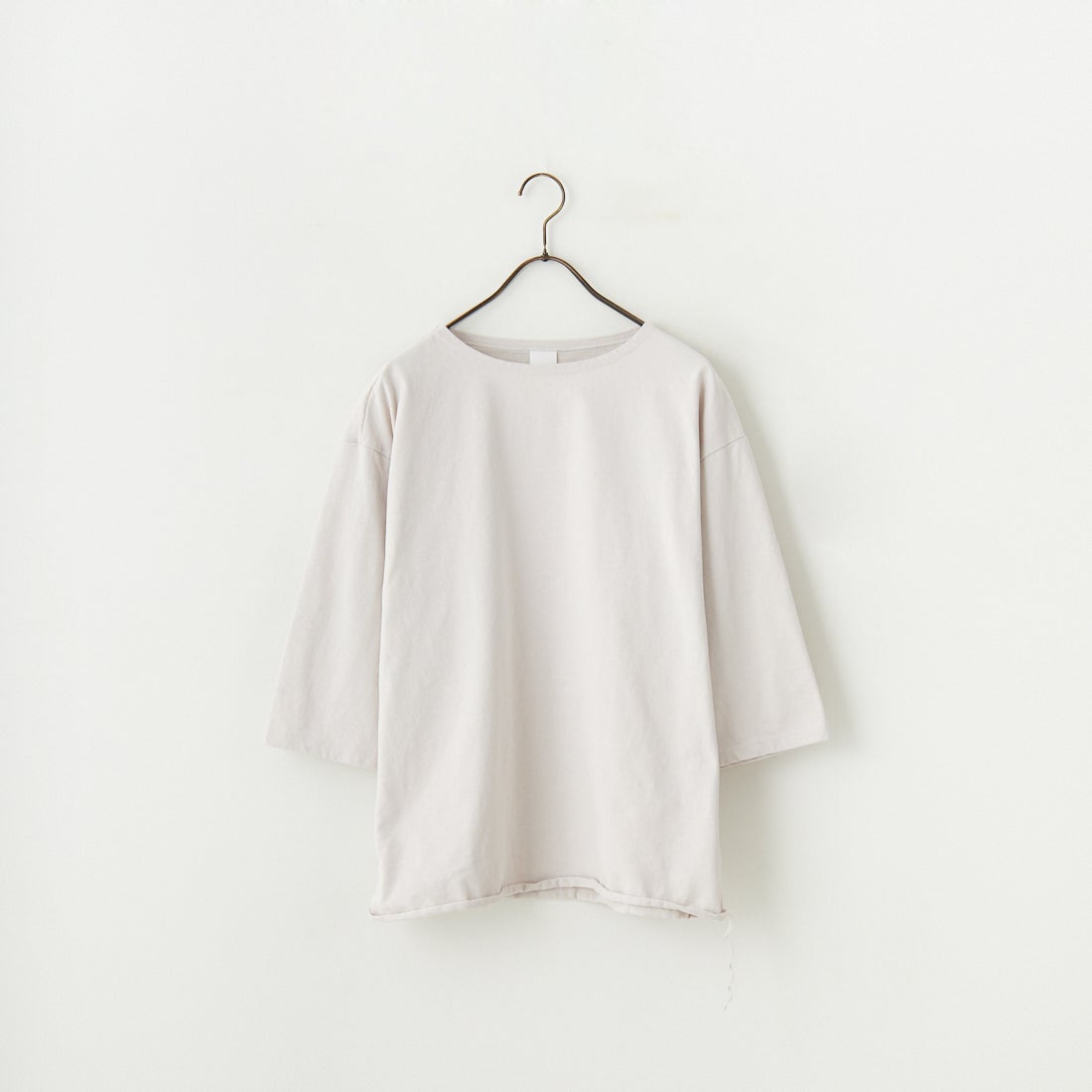 have a good day[ハブアグッドデイ]のボートネック7分袖カットソー。have a good day定番人気の長袖ルーズTシャツ「HGD-206」のマイナーチェンジしたモデル。ゆったりとしたルーズサイズでリラックスした着心地はそのままに、飾り3本針だった脇の縫製を4本針のフラットシーマ縫製に変更。より丈夫で綺麗な仕上がりに。船底の様に横に開いたボートネックが抜け感のある印象。30番手の糸を2本引き揃えて編みたてたコットン100%の天竺生地を使用し、しっかりとした生地感と程よい厚みは透けもなく、安心感のある素材です。