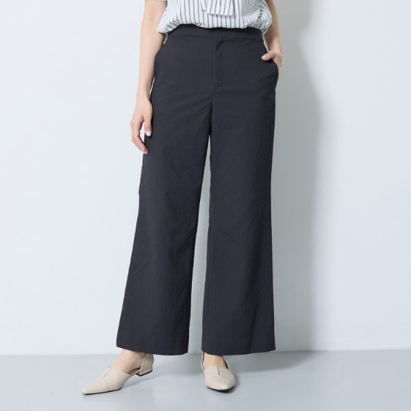 【洗える/UVケア/SETUP可能】ウール調ワイドパンツ