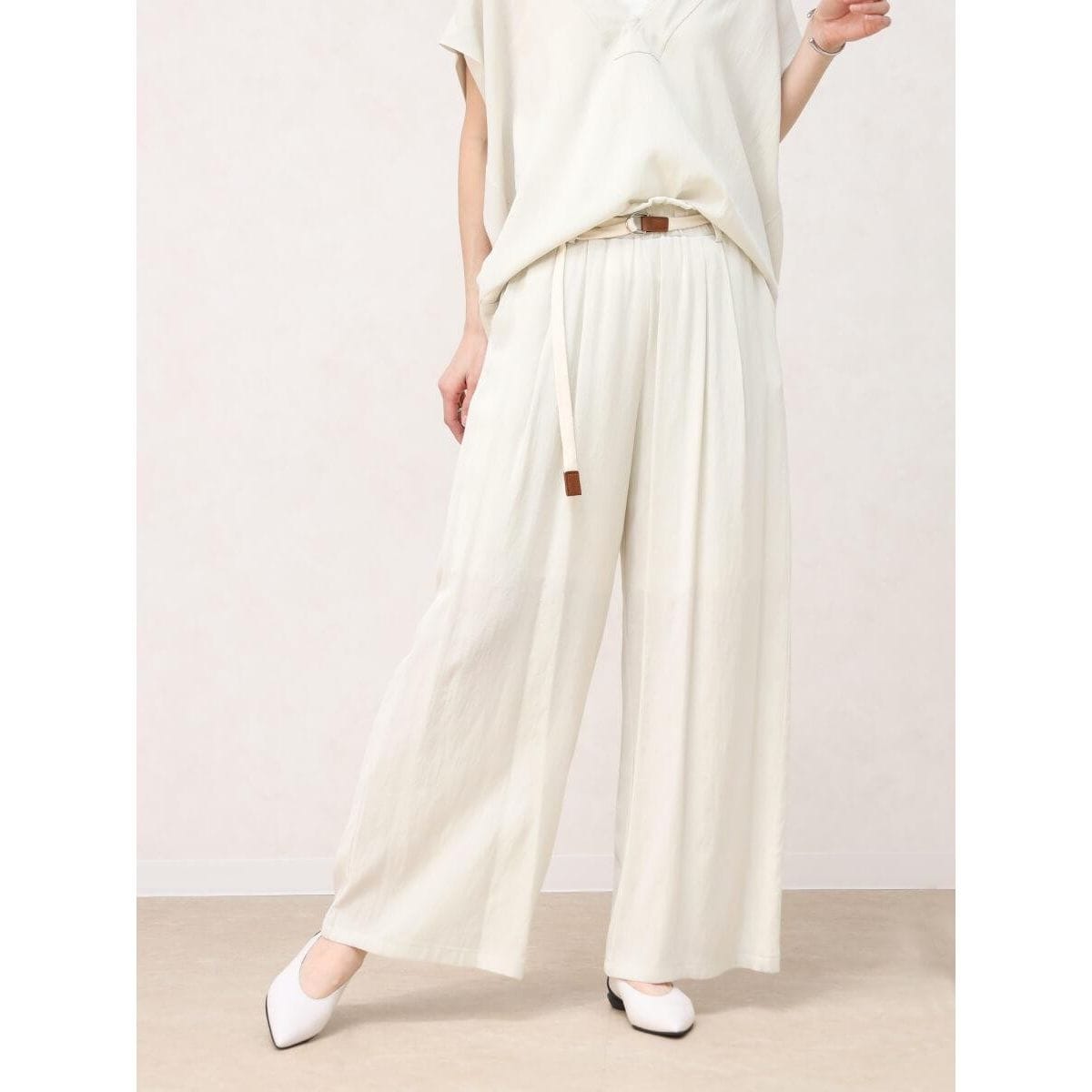 ■落ち感がありさらりとした肌触りの生地を使用したベルト付き優秀パンツ。