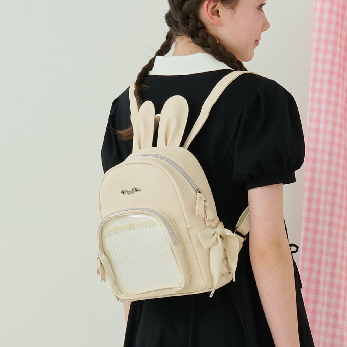 うさ耳デザインと脇のリボンで後ろ姿を可愛らしく演出してくれます。