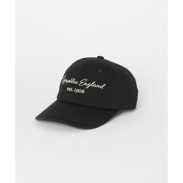 フロントに筆記体のロゴ刺繍を施した6パネルキャップ。