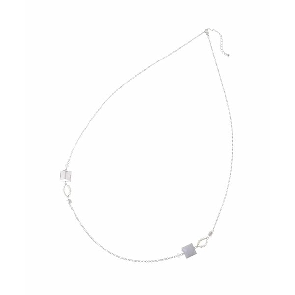 繊細に輝く華奢なロングチェーンに、ニュアンスカラーのスクエアモチーフをあしらったネックレス。