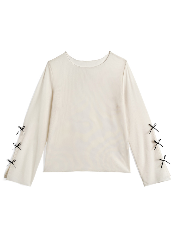 グレイル リボンドット柄シースルーハイネックトップス[dk1274]