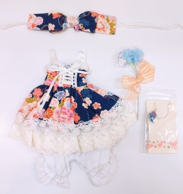 ドール衣装 SD16サイズ 和柄ワンピース&小物セット 紺