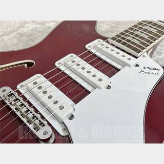 かつて1960年半ばにイタリアで生産されていたVOX Bobcat。このギターはヴィンテージ・テイストの外観をもち非常に美しいギターでした。とくにホローボディのギターには珍しい3シングル・コイル・ピックアップを搭載するなど、他のギターとは一線を画していたといえるでしょう。このギターを甦らせるべく、当時のデザインをそのままに、プレイアビリティーを向上、ハウリングの抑制、ピックアップの性能を上げることにより、現代の音楽シーンにも通用するギターにしたものがBobcat S66です。サンバースト、チェリー・レッド、ブラックの3種類のカラー・バリエーションからお選びいただけます。