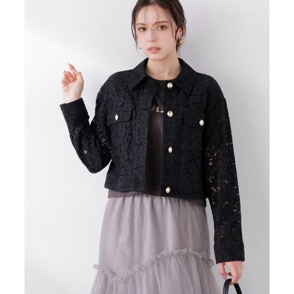 上品なレース素材にゴールドカラー釦が映えるブルゾン。裏地なしの軽やかな着心地で、シャツ感覚でさっと羽織れる一枚です。涼しげな印象でこれからの季節に活躍し、着るだけでトレンド感のあるスタイルが完成します。