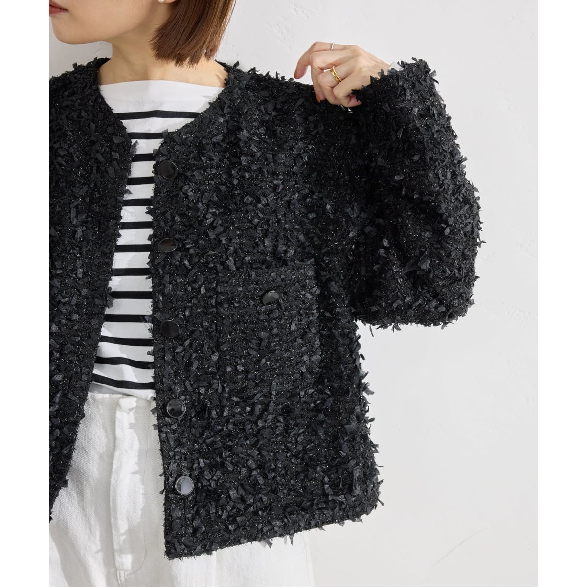 素材の個性を楽しめる、ファンシーツイードジャケット。