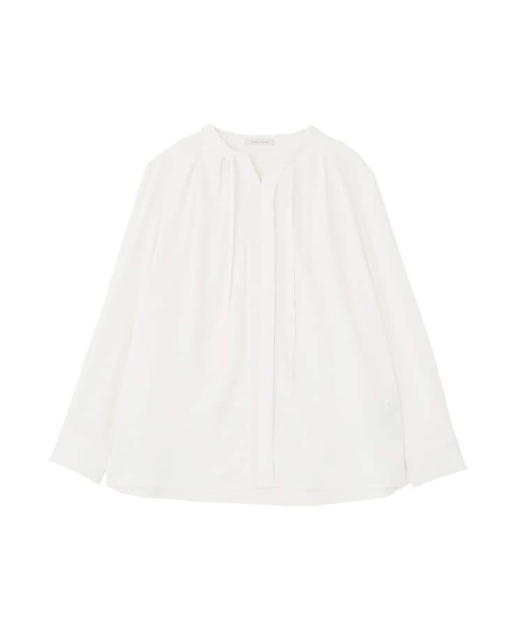 さりげないリボンで華やぐ、大人のきれいめブラウスシンプルな中に上品なアクセントを添えるリボンデザインが印象的なブラウスです。落ち着いた雰囲気のデザインに、フロントのリボンがほどよい華やかさをプラスし、大人のきれいめスタイルを演出します。フロントに施されたタックがやわらかなドレープ感を生み出し、自然な立体感で上品なシルエットを作ります。すっきりとしたネックラインは顔まわりをきれいに見せ、アクセサリーとの相性も良いのが魅力です。フロントホック仕様で着脱しやすく、毎日のコーディネートにも取り入れやすい一枚です。裾のサイドスリットが動きやすさを高め、ボトムインやアウトのどちらでもバランスよく着こなせます。オフィススタイルから休日のお出かけまで幅広く活躍し、上品カジュアルな装いを楽しめる万能アイテムです。※ホワイト系は、やや透け感あり。透け感[ややあり]