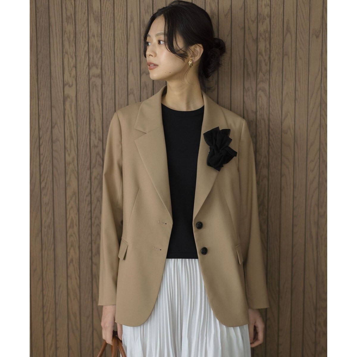 【スタッフコメント】▼身長158cm|着用サイズ2 (通常着用サイズ2)ボクシーなシルエットでハンサムに決まるテーラードジャケットです。裏地は背抜き仕様なので、長いシーズン着用していただけます。シワになりにくく柔らかいので、お取り扱いしやすい素材感もうれしいポイント!