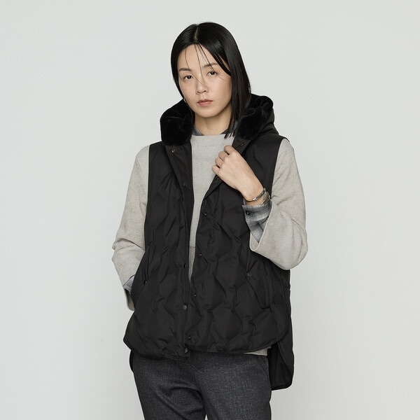 首元に沿ったフードが暖かかく、お顔まわりも華やかにしてくれます。