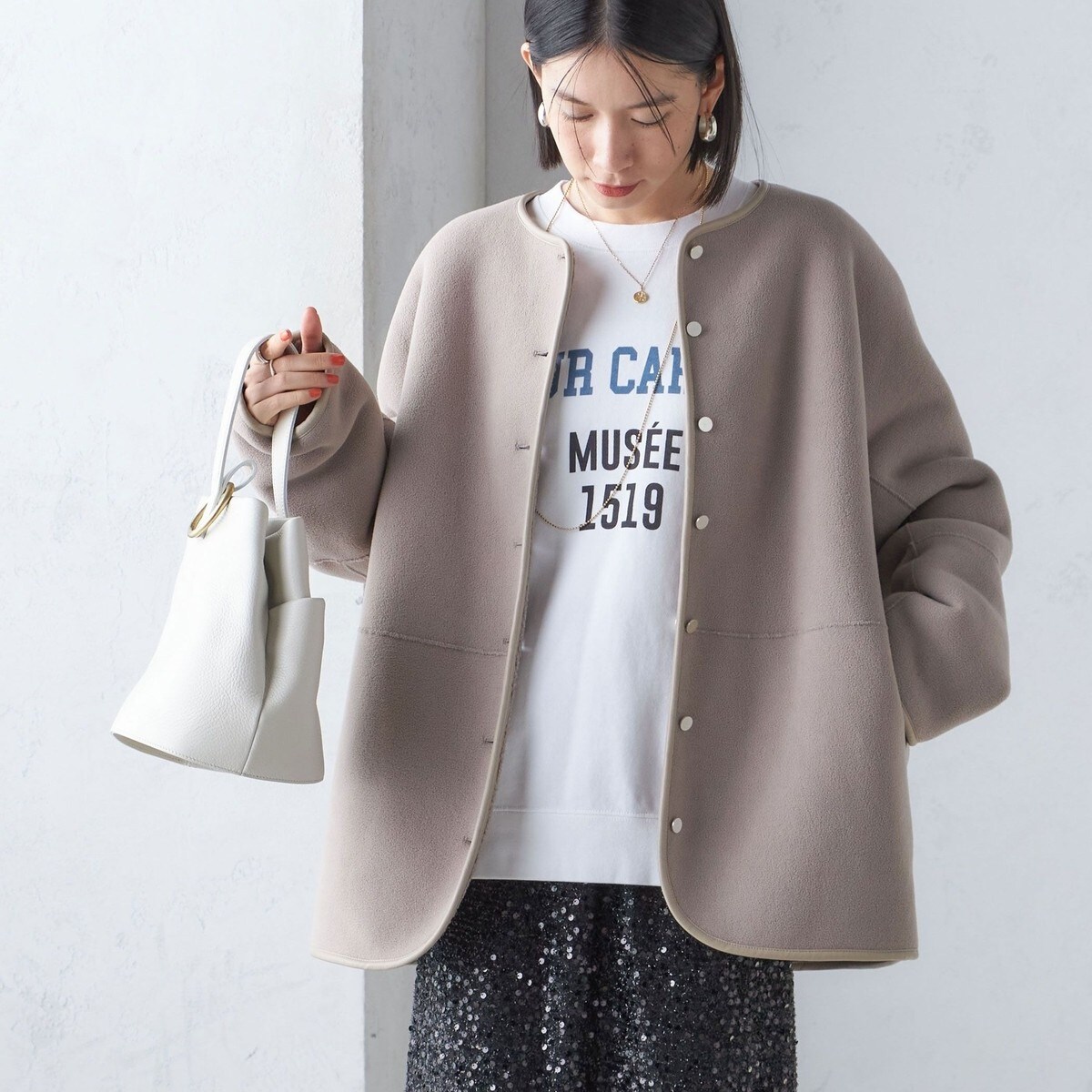 【新品タグ付き】SHIPS リバーシブル ボア フリース ブルゾン コート ジャケット ノーカラーコート ホワイト