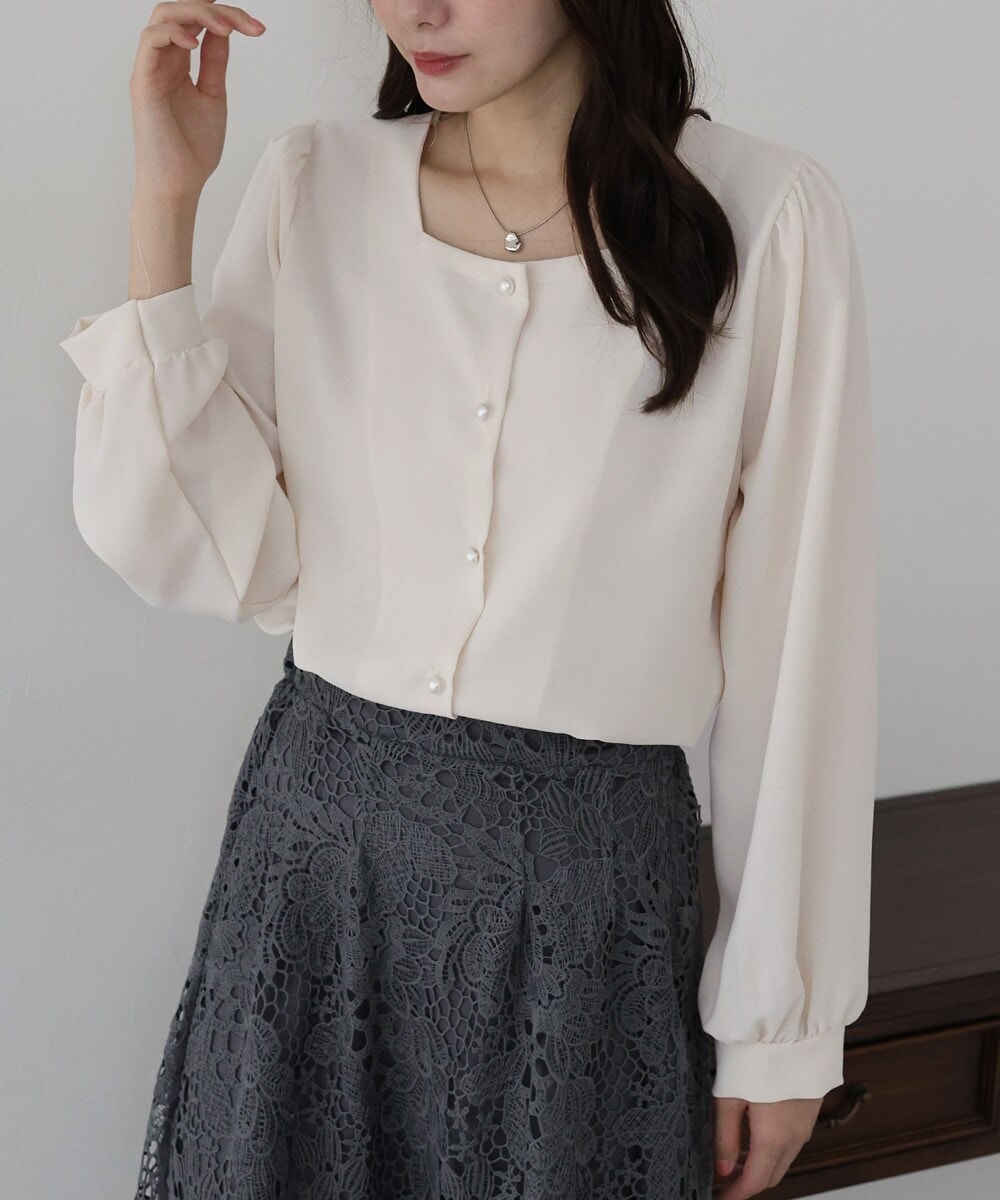 パールボタンが華やかな長袖ブラウス