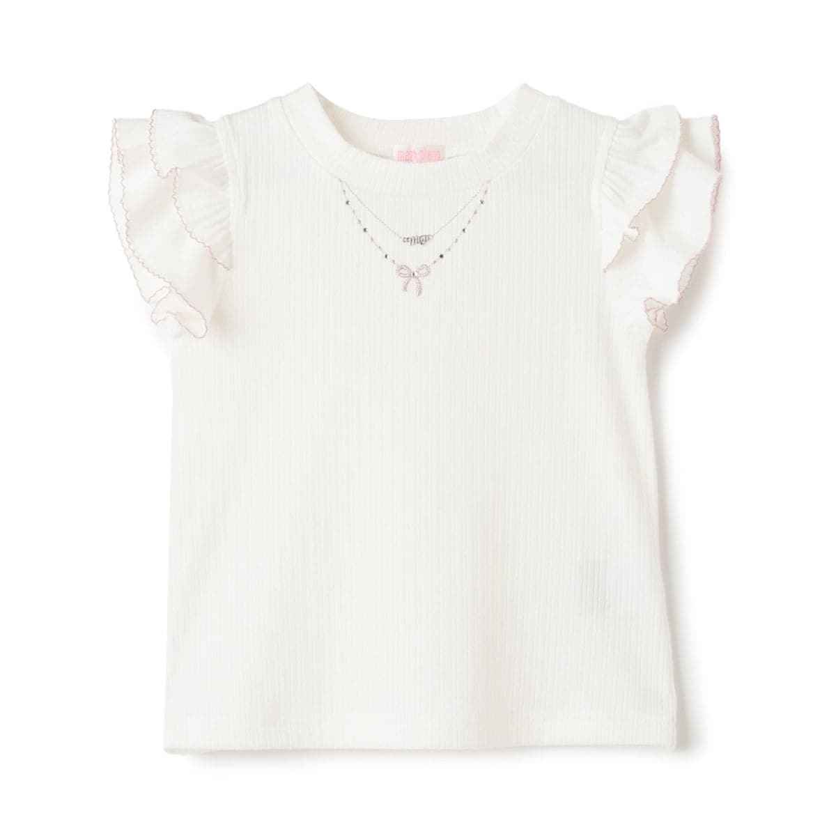 シンプルだけどちゃんとかわいいリボンのネックレス風刺しゅうがポイント。