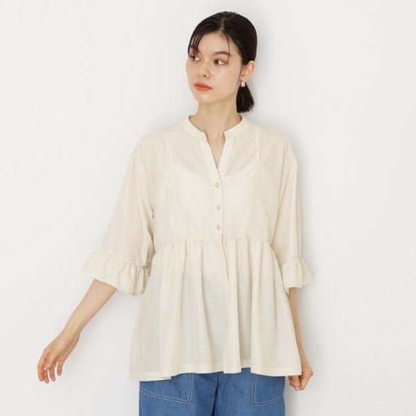 ウエストで切替ギャザーがたっぷり入ったペプラムチュニックデザインで、後ろがやや長めのスタイルが魅力的。