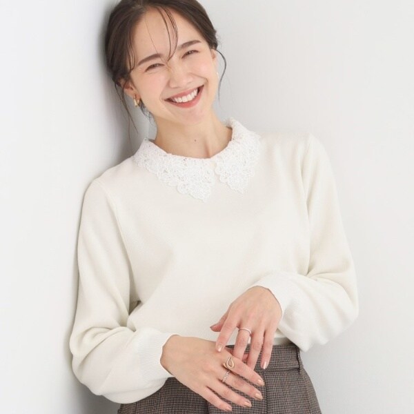 【洗濯機可S-LL】お袖と襟のフリルで大人上品 やわらかリブニット