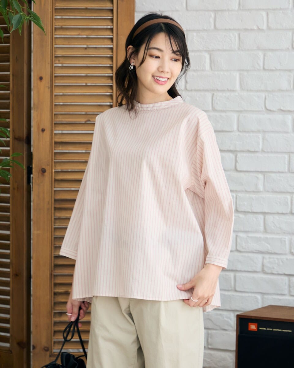 ヌーヴェルドゥパラディ 長袖ブラウス ストライプ プルオーバー 丸襟 日本製