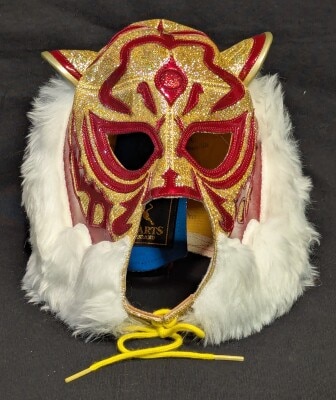 プロレスマスク※ミニサイズ YN製【初代タイガーマスク (金ラメ×赤ラメ・金フチ)】伝説タイプ ロゴ・タグ付き サイン入り