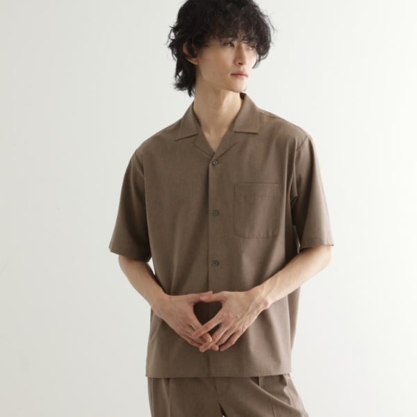 衿はレギュラーカラーですが、第一ボタンを外してオープンカラーでの使用にもでき、2WAYでお楽しみいただけます。