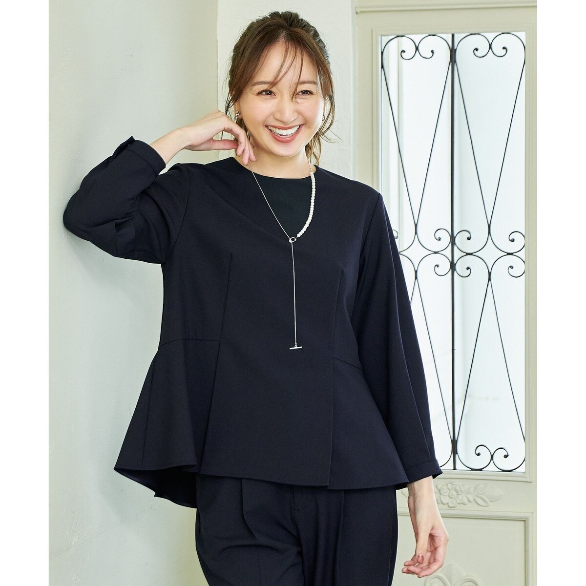 女性らしいバランスの、上品なペプラムブラウス