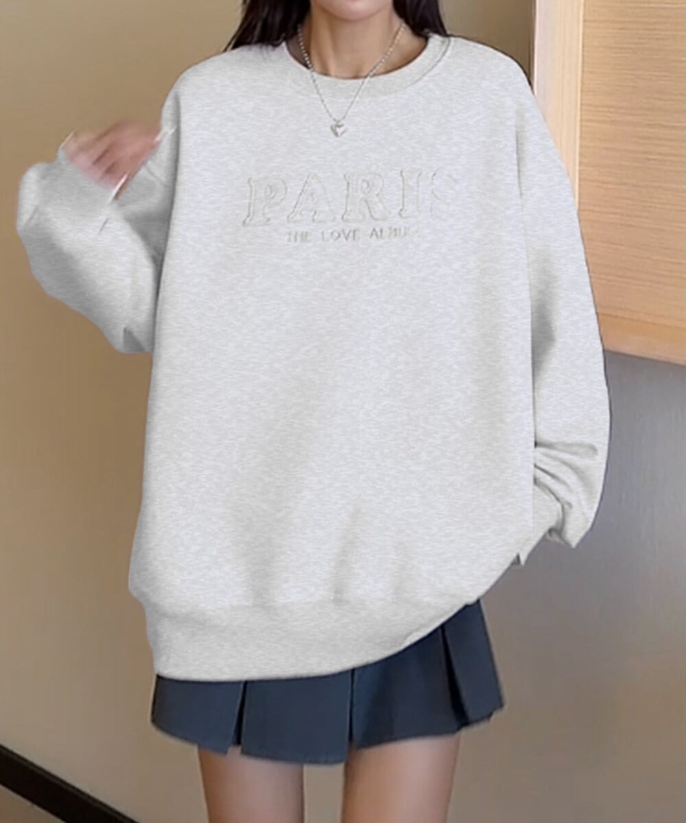 フロントに「PARIS」の刺繍が施されたシンプルでありながらおしゃれなスウェットです。色合いは淡いピンクをはじめ、パステルカラーが揃っており、優しさと上品さを感じさせます。ゆったりとしたオーバーサイズのシルエットが、リラックスした雰囲気を作り出し、カジュアルでもありながら、スタイリッシュな印象を与えます。