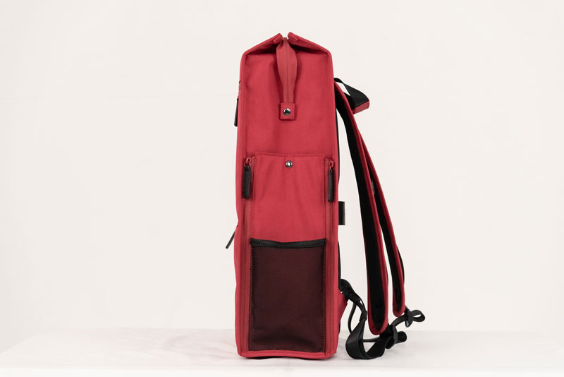 フロントには書類などを入れられるファスナーポケット、側面にはペットボトルやスマホが入るメッシュポケットと小物ポケットを設けているなど抜群の収納力を実現している、まさに機能性と実用性を突き詰めた高機能自立収納鞄となっています。