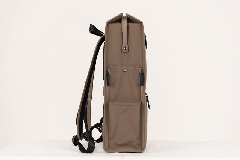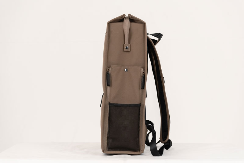 フロントには書類などを入れられるファスナーポケット、側面にはペットボトルやスマホが入るメッシュポケットと小物ポケットを設けているなど抜群の収納力を実現している、まさに機能性と実用性を突き詰めた高機能自立収納鞄となっています。
