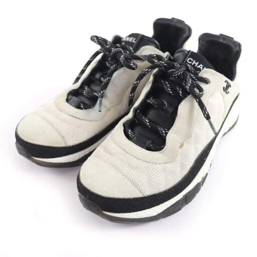 【ドンドン見直し】良品○CHANEL シャネル G45210 スウェードレザー ココマーク レースアップ ローカットスニーカー キャメル ブラック 41 イタリア製 メンズ【中古】