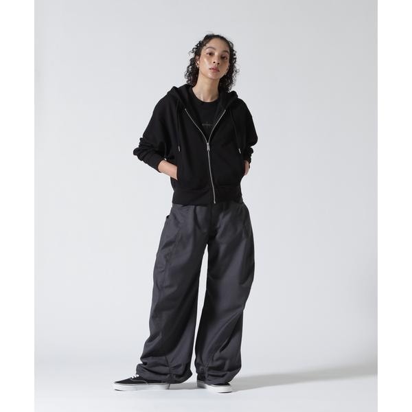 ワークパンツからインスパイアしたワイドパンツ。サイドに入ったカーブラインの切り替えが、従来にないボリューム、遊びを効かせたフォルムを作り出す。