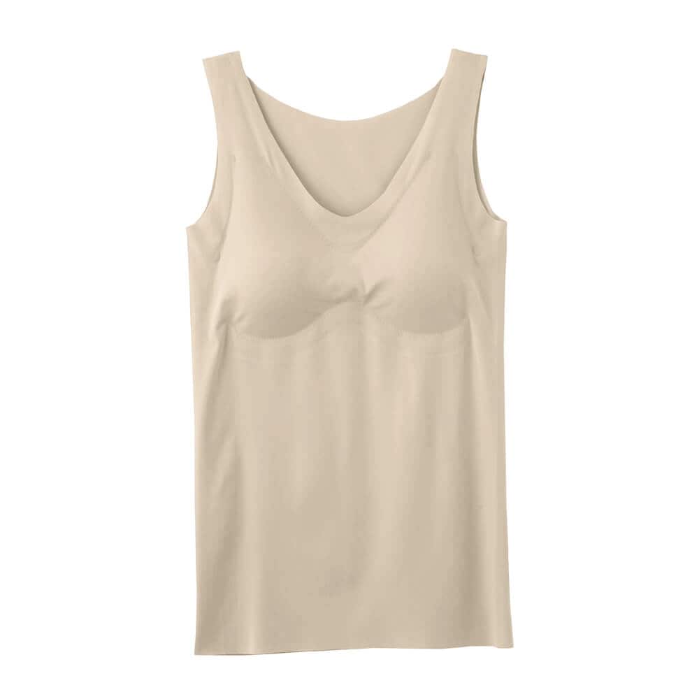 完全無縫製のひんやり軽いグループのパッド付タンクトップ(ゆったリラ)。