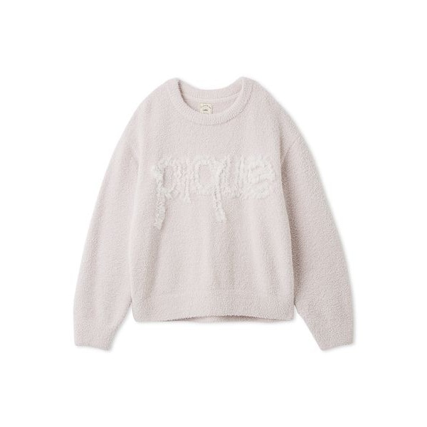 gelato pique定番の‘ベビモコ’と、羽のように軽量な‘フェザー’の糸をミックスした、夢心地なふんわり感を味わえるニットシリーズです。ややボリューミーな袖と、長すぎない丈感でトレンドライクに着こなせるプルオーバー。胸元のロゴはふわふわのチュールで立体的に表現し、甘めのテイストに仕上げました。色は柔らかいオフホワイトとピンクの2色をご用意。同シリーズのフレアショートパンツと合わせたり、同時期のハート柄チュールシリーズとのコーディネートもおすすめです。