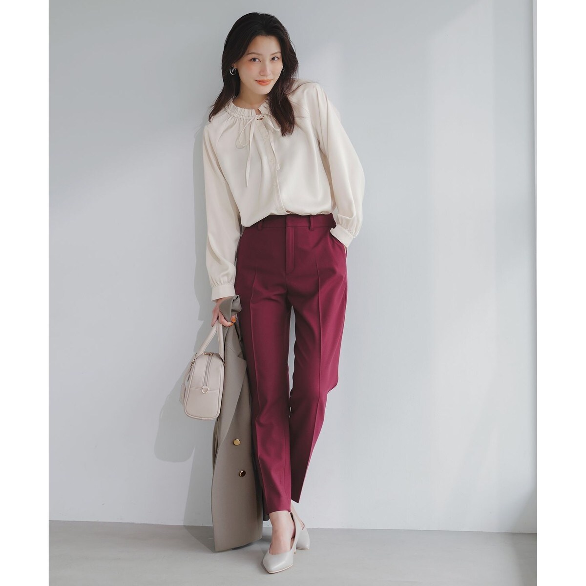 きれいめ~カジュアルまで、どんなスタイルにもマッチするボトムスです。通勤シーンには同シリーズのジャケットとのセットアップがおすすめ。