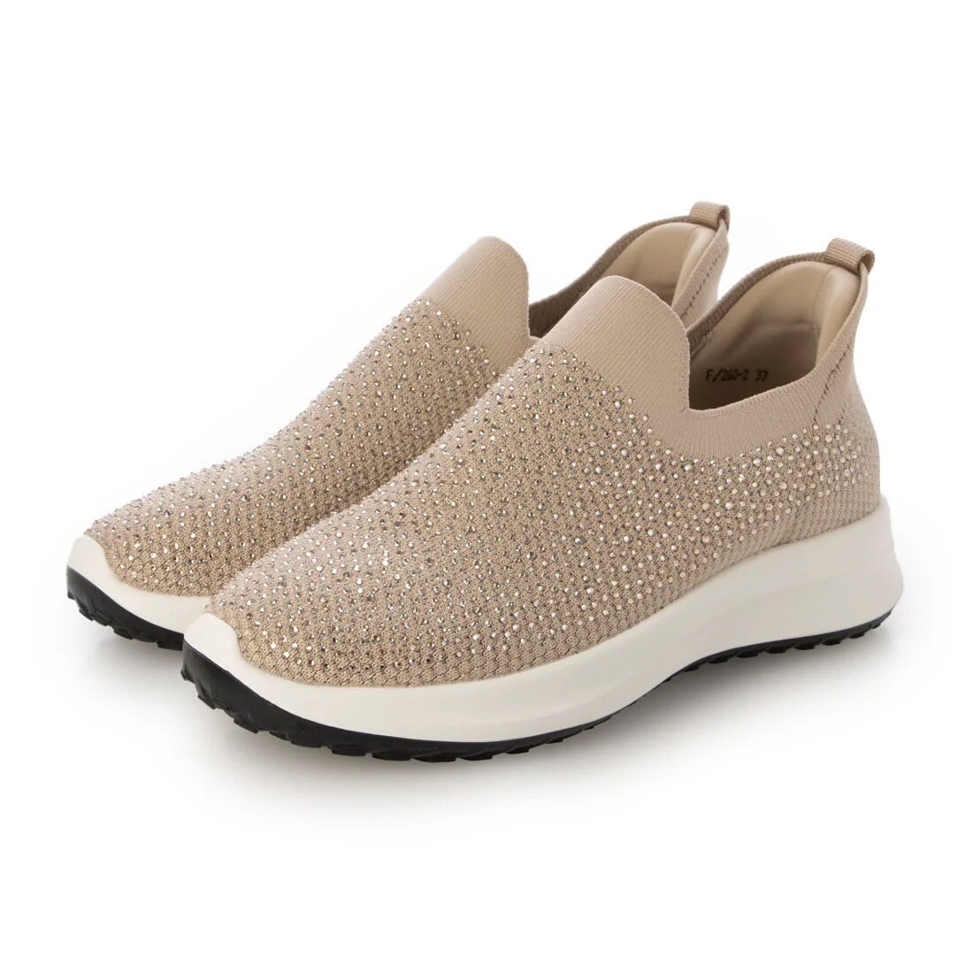 EDWIN エドウィン ニットスニーカー 23.0cm グレー ビジュー 厚底 エアソール スリッポン レディース 軽量