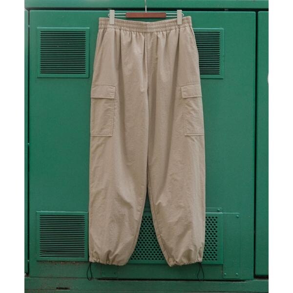 シルエットはトレンドライクな適度にゆとりをもたせたリラックスシルエットで、裾にはシルエット調整が可能なドローコードを配備し、様々なコーディネートと合わせていただけます。