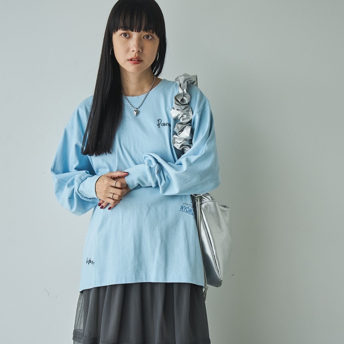・ランダムに配したプリントと刺繍が1枚で様になるロンTEE