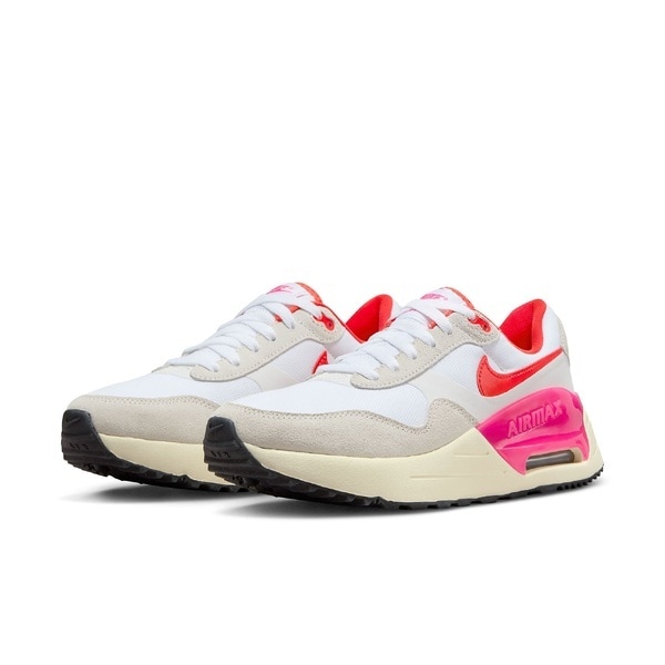 ナイキ ウィメンズ エア マックス SYSTM ウィメンズシューズ マックスらしさあふれるマックス。 エア マックス SYSTMは、みんなが愛する80年代のテイストを詰め込んだ一足。 定評のあるビジブルNike Airのクッショニングに、スポーツをイメージしたスタイリッシュなアッパーを組み合わせました。エア マックスの復活です。ビンテージスタイルに最先端の機能 80年代を席巻したすべてのエア マックスモデルをイメージし、伝統美を現代的にアレンジ。抜群の通気性と耐久性、さまざまな素材を組み合わせたアッパーが耐久性と通気性を発揮。もともとは高性能ランニングシューズ向けデザイン。Max Airクッショニングが定評のある快適な履き心地を実現。 ラバーアウトソールがいつまでも続く優れたトラクションを発揮。 スポーツ