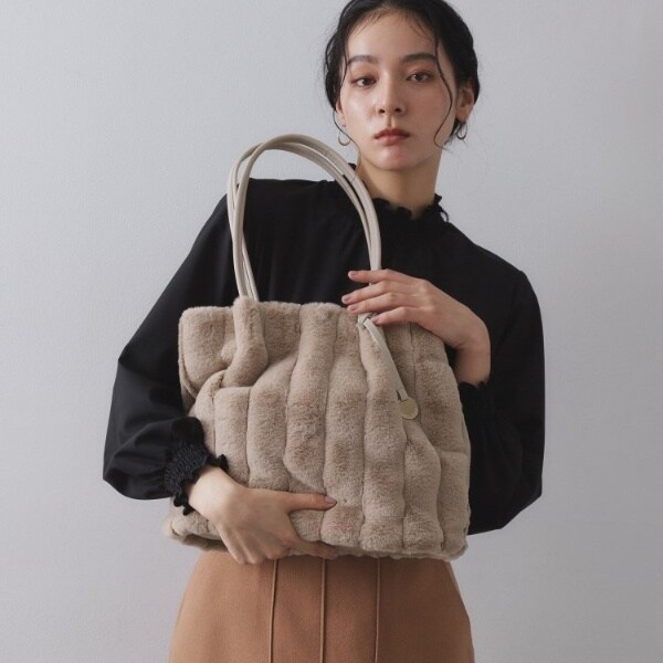 秋冬らしいフェイクファーを使用したトートバッグ。