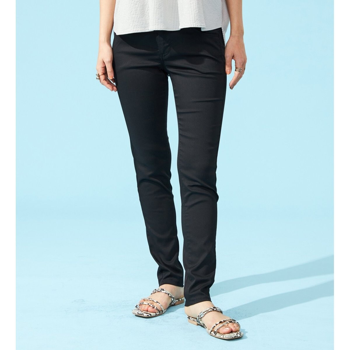 シルエットは脚のラインにピッタリ沿うスキニー。抜群のストレッチ性とコシのある生地感で身体のラインを拾わず、どんな動きもラクラク。「爪を傷めないスナップボタン」や「しゃがんでもシャツが出ないすべり止めテープ」「便利なペン挿し」などハタラク人に嬉しいたくさんの機能付き。