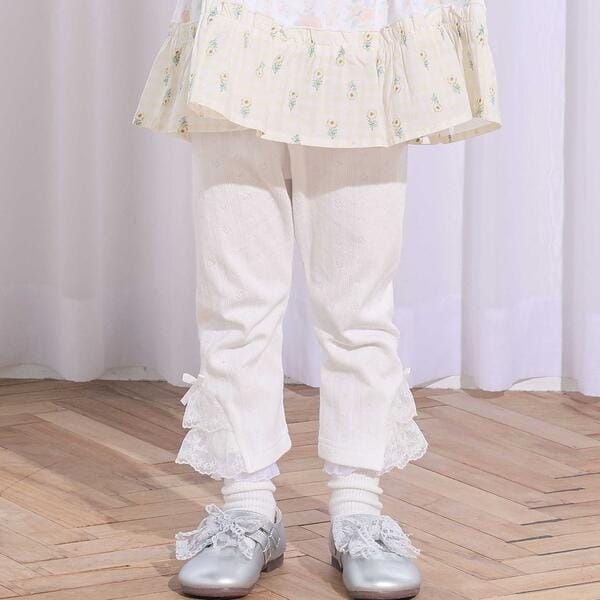 ハート模様がふんわり散りばめられた、女の子用の7分丈レギンス。