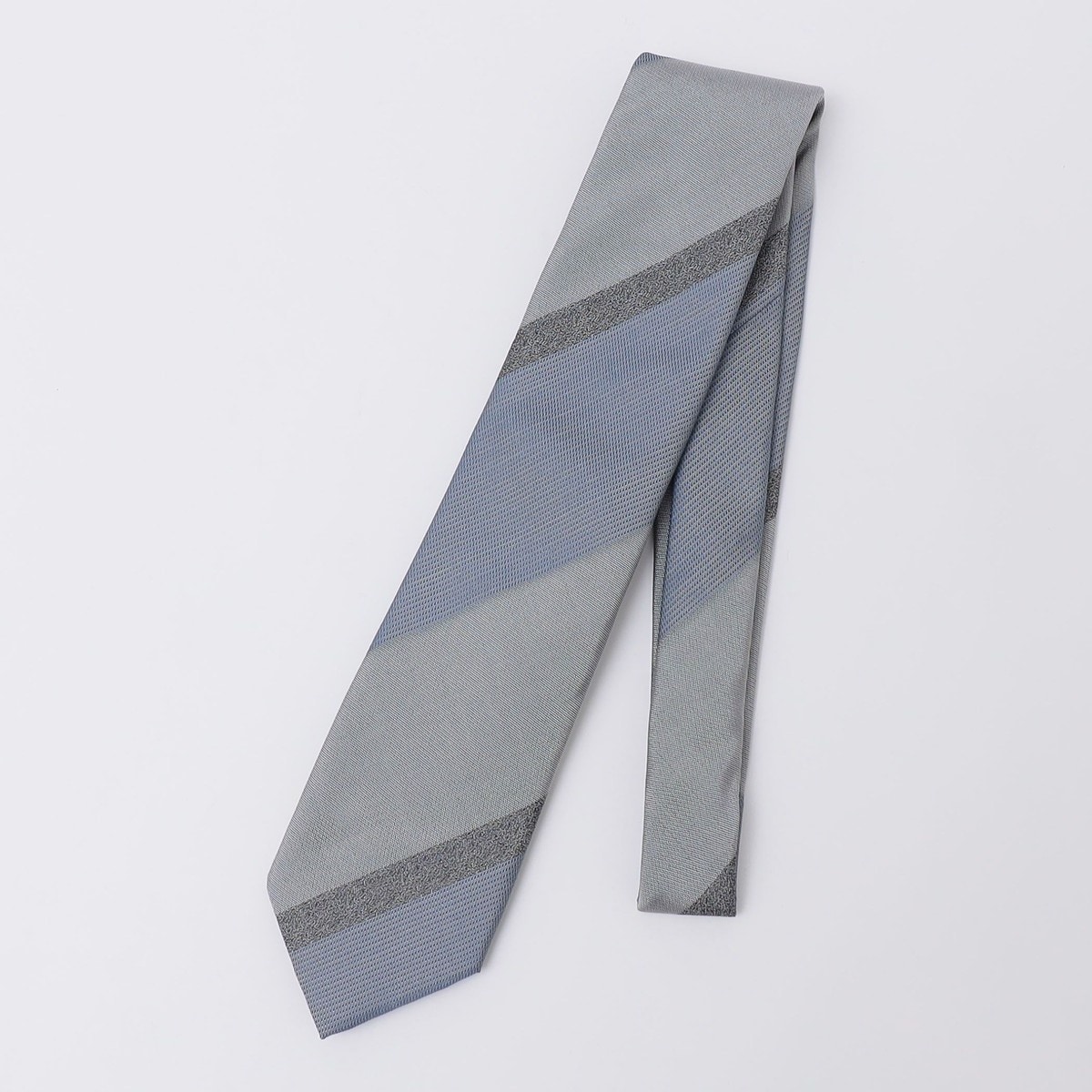 シルクならではの穏やかな光沢とすっきりとしたワイドストライプ柄を組み合わせた、風格のある一本です。