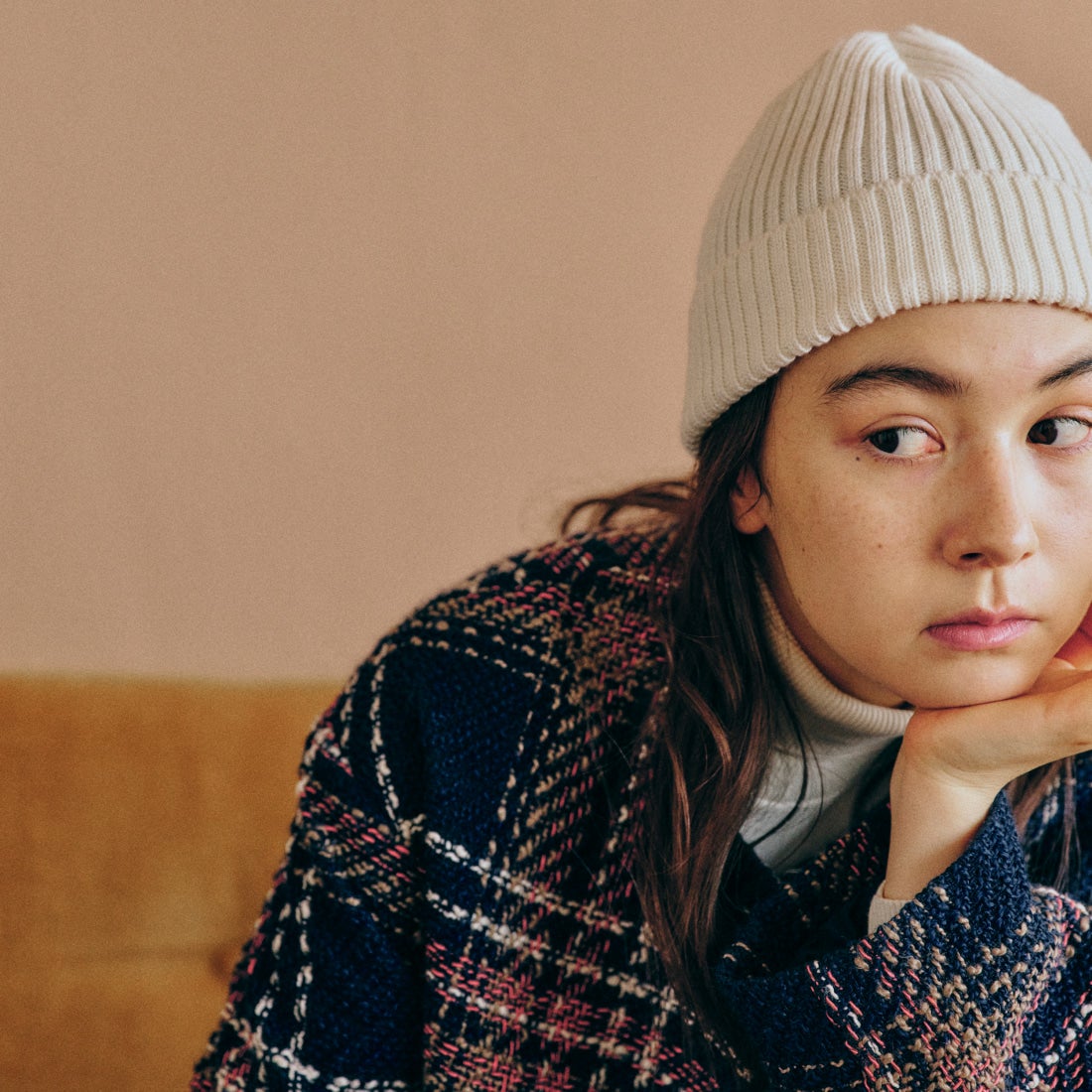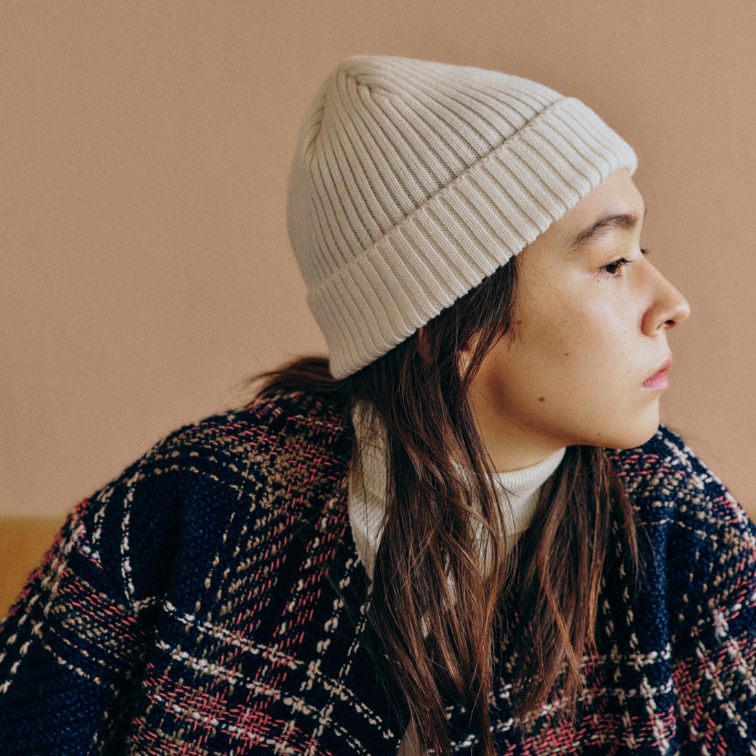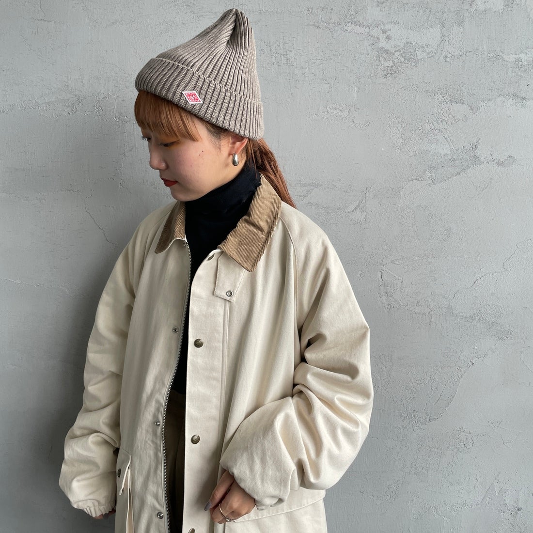 DANTON[ダントン]のリブニットキャップ。ウール100%。シンプルなデザインのボディに、ブランドロゴのワッペンがアクセントになったアイテムです。