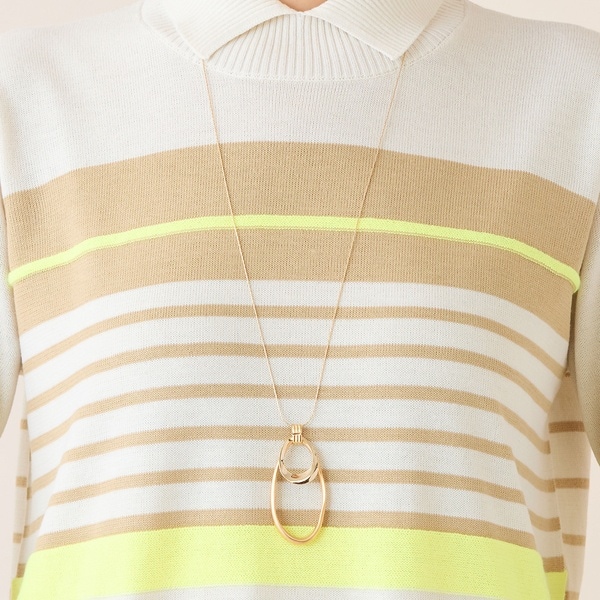オーバルリングを2つ重ねた動きのあるネックレス。