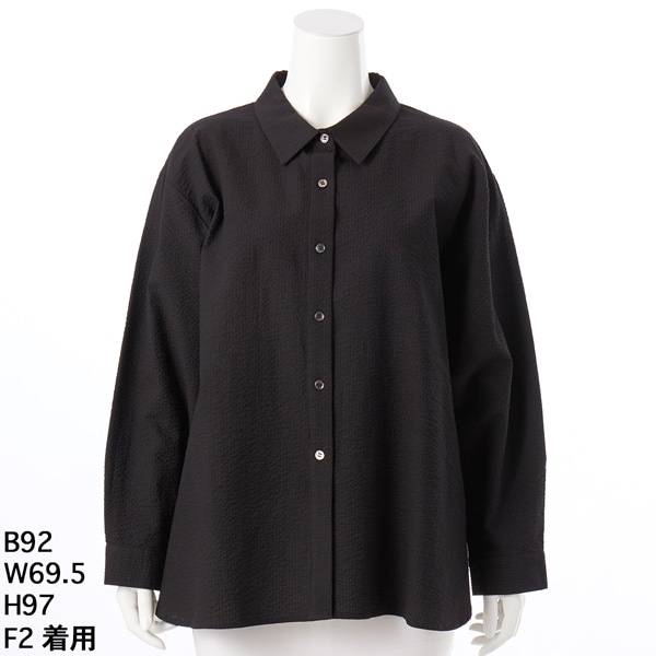 ノーカラーシャツブラウス