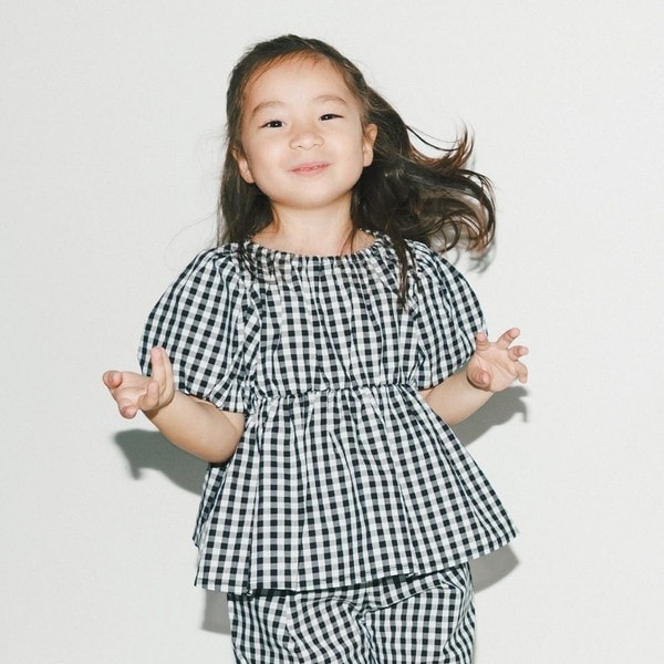 胸元で切り替えたチュニックシルエットが、やわらかく可愛らしい印象に仕上げています